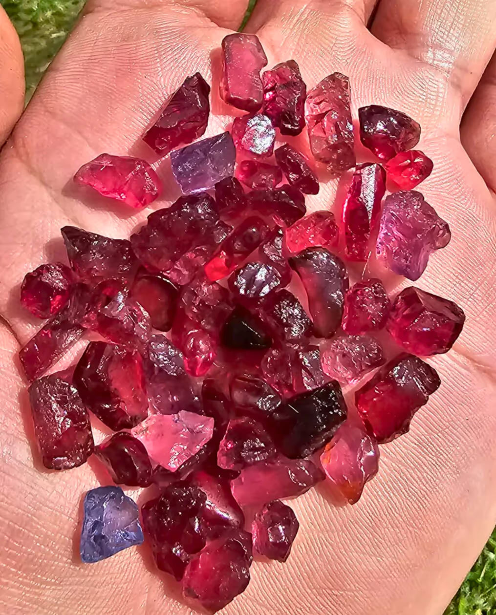 - Le rare spinelle Mahenge, du rose vif au rouge rosé, est aussi très prisé.