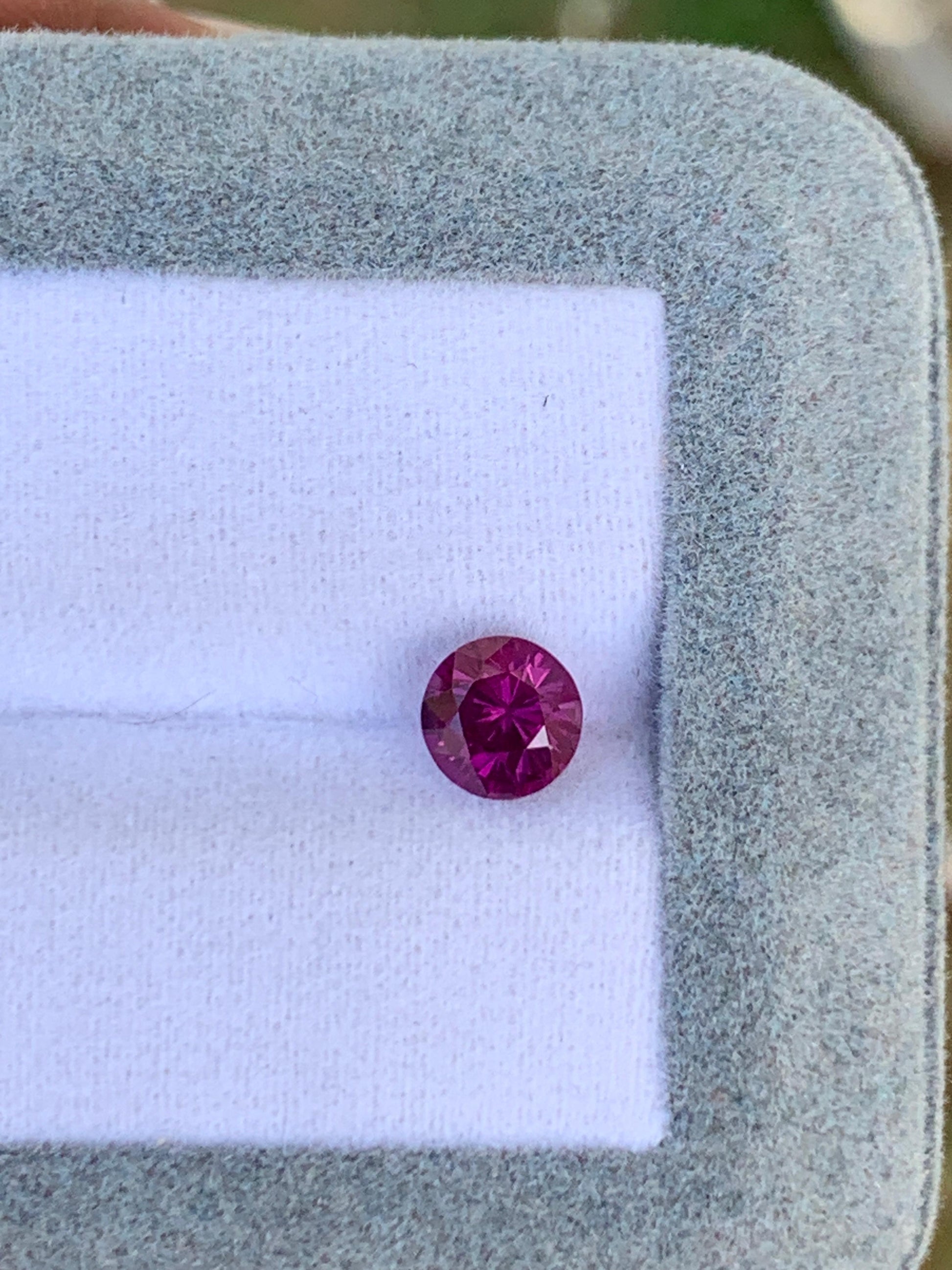 Un saphir rose intense de 1,50ct, taillé en rond classique. Chauffé pour sublimer son éclat, ce joyau de Madagascar rayonne d’intensité et de charme.